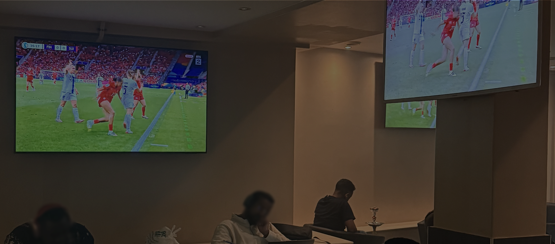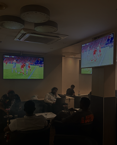 Pour les amateurs de sport, nous diffusons en soirée tous les principaux événements sportifs ainsi que des matchs et des compétitions à la demande. Entouré d'une riche sélection de restaurants, vous pouvez commander des plats à emporter et savourer un bon repas au Mogador avec votre chicha préférée.