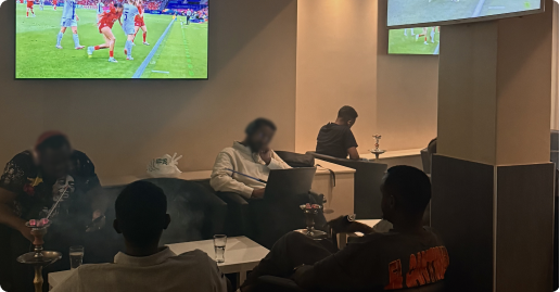 Détendez-vous et profitez des heures de fin de soirée pour déguster dune chicha et des boissons dans notre café. Profitez d'une expérience unique, seul ou avec des amis !